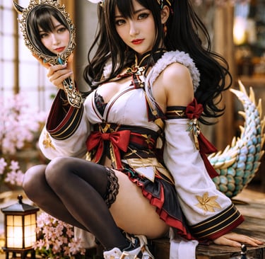 Not cosplay like a convention costume that screams for attention, but thoughtful cosplay. Shrine maiden outfits reimagined with dragon motifs. Street-fashion jackets layered over traditional silhouettes.
